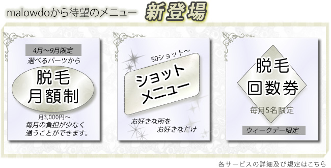 大人の脱毛サロンから、悩みをリセット出来るトータルサロンへ。 長年、脱毛を中心にお世話になって参りましたmalowdoが生まれ変わります。
